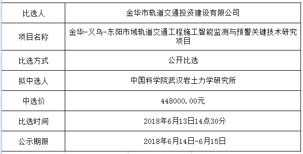 金華-義烏-東陽市域軌道交通工程軌道、公交乘車碼二碼融合清分系統(tǒng)集成項(xiàng)目的中標(biāo)候選人公示