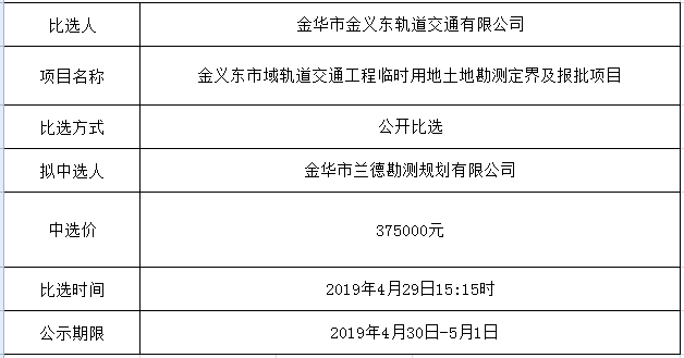 金華-義烏-東陽市域軌道交通工程軌道、公交乘車碼二碼融合清分系統(tǒng)集成項(xiàng)目的中標(biāo)候選人公示
