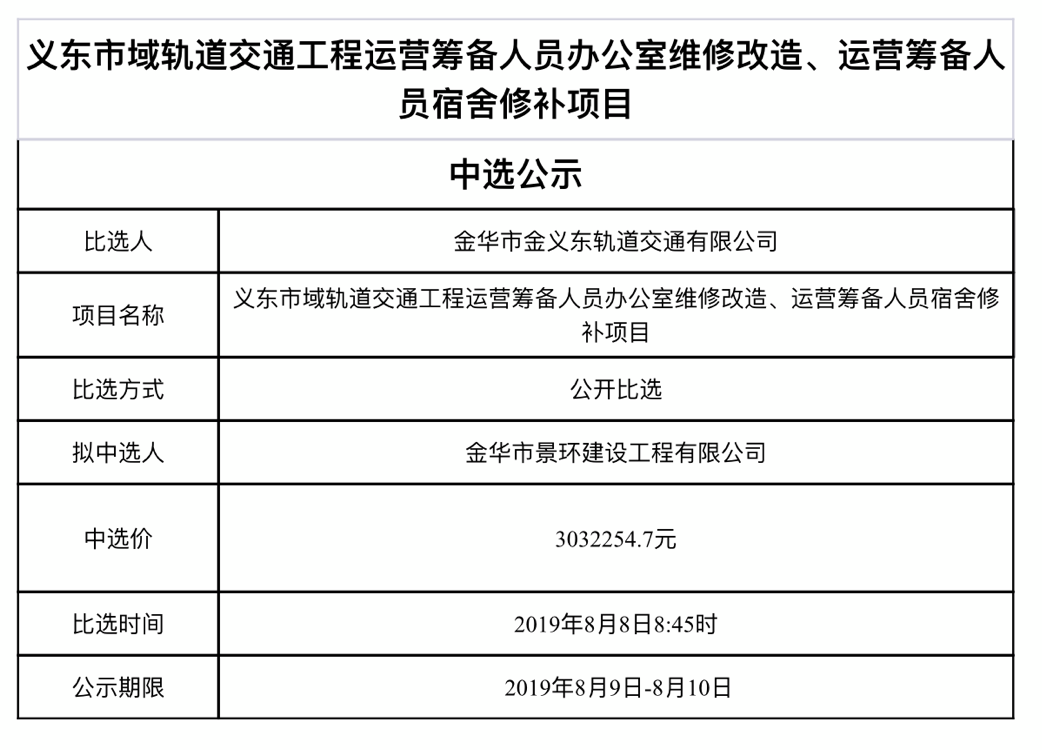 金華-義烏-東陽市域軌道交通工程軌道、公交乘車碼二碼融合清分系統(tǒng)集成項目的中標(biāo)候選人公示