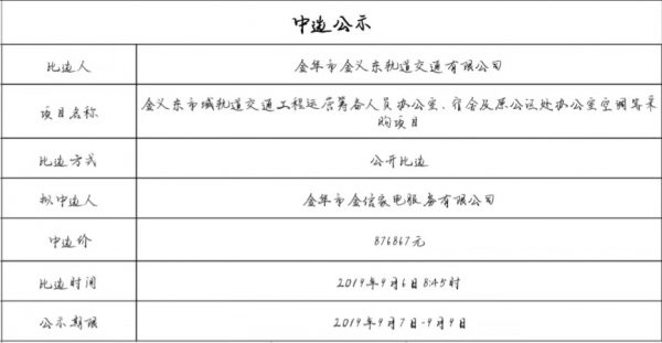 金華-義烏-東陽市域軌道交通工程軌道、公交乘車碼二碼融合清分系統(tǒng)集成項(xiàng)目的中標(biāo)候選人公示