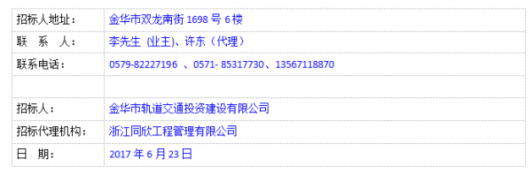 金華-義烏-東陽市域軌道交通工程(項目名稱)經浙江省發(fā)展和改革委員會《省發(fā)展改革委關于金華-義烏-東陽市域軌道交通工程初步設計的批復》(浙發(fā)改設計〔2017〕20號)文同意建設,并已列為浙江省重點建設項目。項目建設規(guī)模本項目由金華—義烏段和義烏—東陽(橫店)兩條線路組成,兩線在秦塘站呈雙島四線同站臺換乘,同時具備金華-義烏-東陽方向的貫通運營條件。其中,金華—義烏段線路起于金華市金華站,經由江北二七區(qū)塊、江南核心區(qū)、金東區(qū)、金華南站、金義新區(qū)至義烏主城區(qū)秦塘,線路預留近期向東北延伸至蘇溪的條件;義烏-東陽(橫店)線路起于義烏高鐵站,經由義烏主城區(qū)-秦塘-國際商貿城-東陽主城區(qū)-羅屏鄉(xiāng)至橫店客運中心,線路預留近期向北延伸至浦江的條件。線路全長107.166公里,其中地下線 26.22km,過渡段長約 4.365km,高架線長約 74.12km,山嶺隧道長 2.465km,共設站 31 座(秦塘站計為 2 座),其中地下車站 13 座(秦塘站計為 2 座),設一段三場,建設地址位于金華地區(qū)(含金華市婺城區(qū)、金東區(qū)、義烏市、東陽市),計劃于2021年建成。項目業(yè)主為金華市軌道交通投資建設有限公司,資金來源為政府投資和自籌,出資比例為(國有資金或財政資金占比)34.6%。項目已具備招標條件,招標人為金華市軌道交通投資建設有限公司(委托代理機構為浙江同欣工程管理有限公司),現對該項目的盾構管片01標段采購進行公開招標。