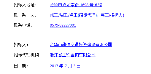 5、潛在投標人對招標文件有疑問的,通過浙江省公共資資源交易中心電子招投標交易平臺提交,提交疑問截止日為2017年7月13日16:30。招標人將于2017年7月25日前在網上發(fā)布補充(答疑、澄清)文件。潛在投標人應自行關注網站公告,招標人不再一一通知。投標人因自身貽誤行為導致投標失敗的,責任自負。
