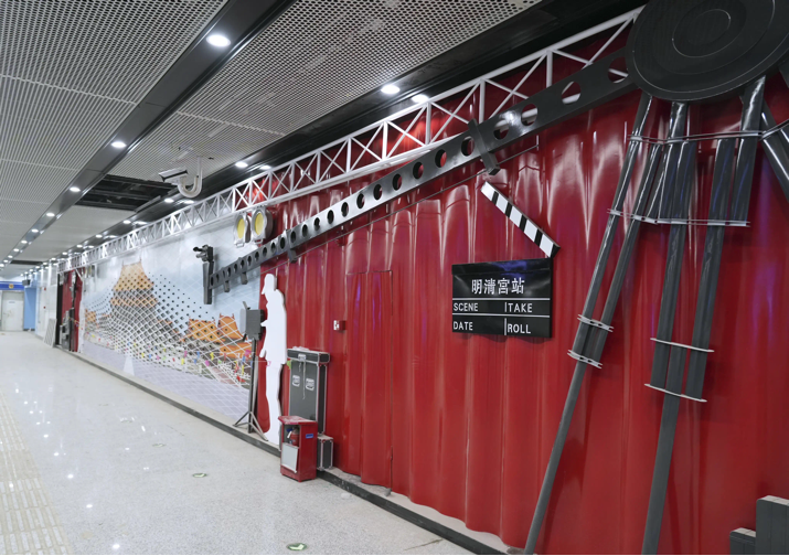 走進(jìn)明清宮站,仿佛踏入了一個(gè)時(shí)空交錯(cuò)的奇幻世界。站內(nèi)的每一處細(xì)節(jié)都透露著濃郁的影視氛圍,讓人不由自主地沉醉其中。精心設(shè)計(jì)的裝飾風(fēng)格,讓人在瞬間實(shí)現(xiàn)了從現(xiàn)實(shí)世界到影視世界的無縫穿越。