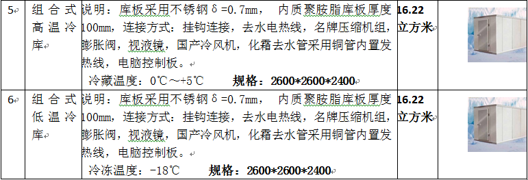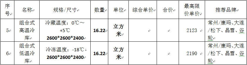 2.塘雅車輛段綜合樓廚房設備清單報價表中序號5、組合式高溫冷庫以及序號6、組合式低溫冷庫的規(guī)格、數(shù)量及單位進行修改,詳見下表:
